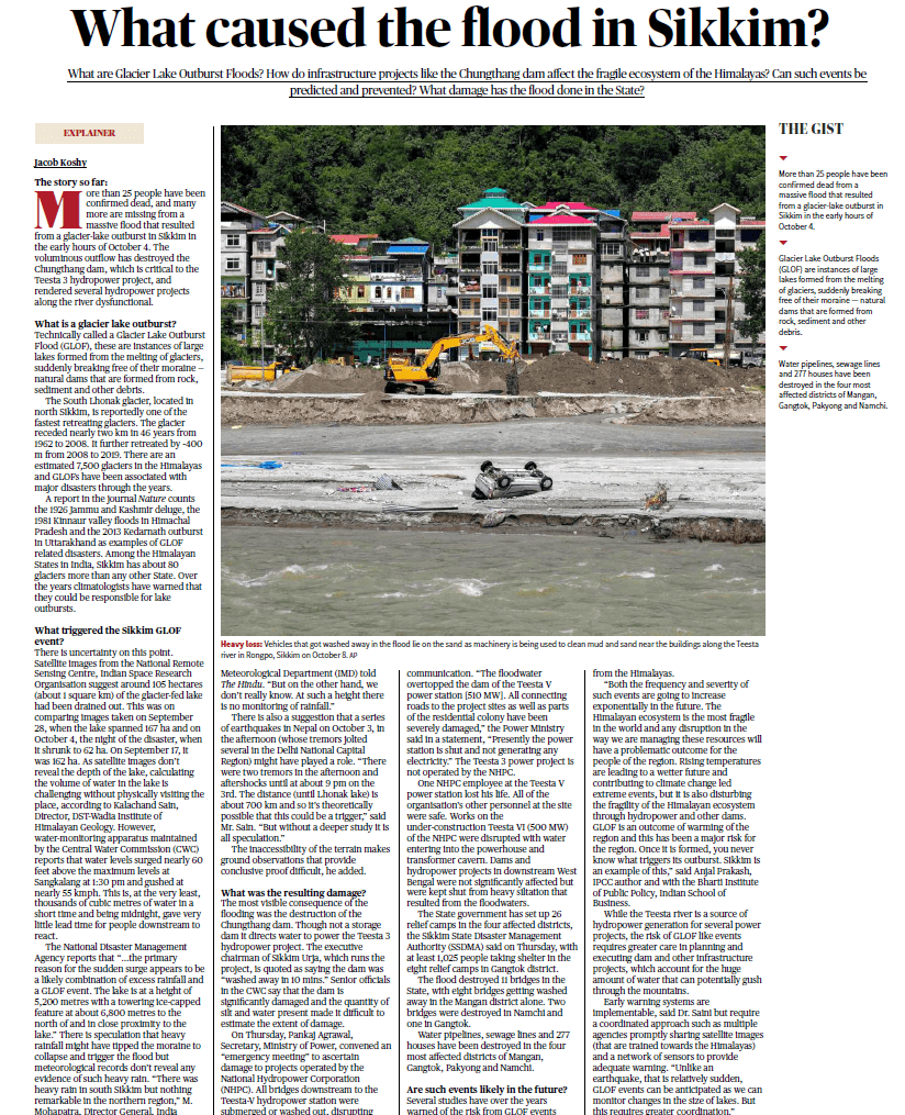 - A report in the journal Nature counts the 1926 Jammu and Kashmir deluge, the 1981 Kinnaur valley floods in Himachal Pradesh and the 2013 Kedarnath outburst in Uttarakhand as examples of GLOF related disasters. Among the Himalayan States in India, Sikkim has about 80 glaciers more than any other State. Over the years climatologists have warned that they could be responsible for lake outbursts.