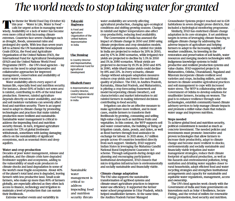 - The world needs to stop taking water for granted - Page No.6, GS 3